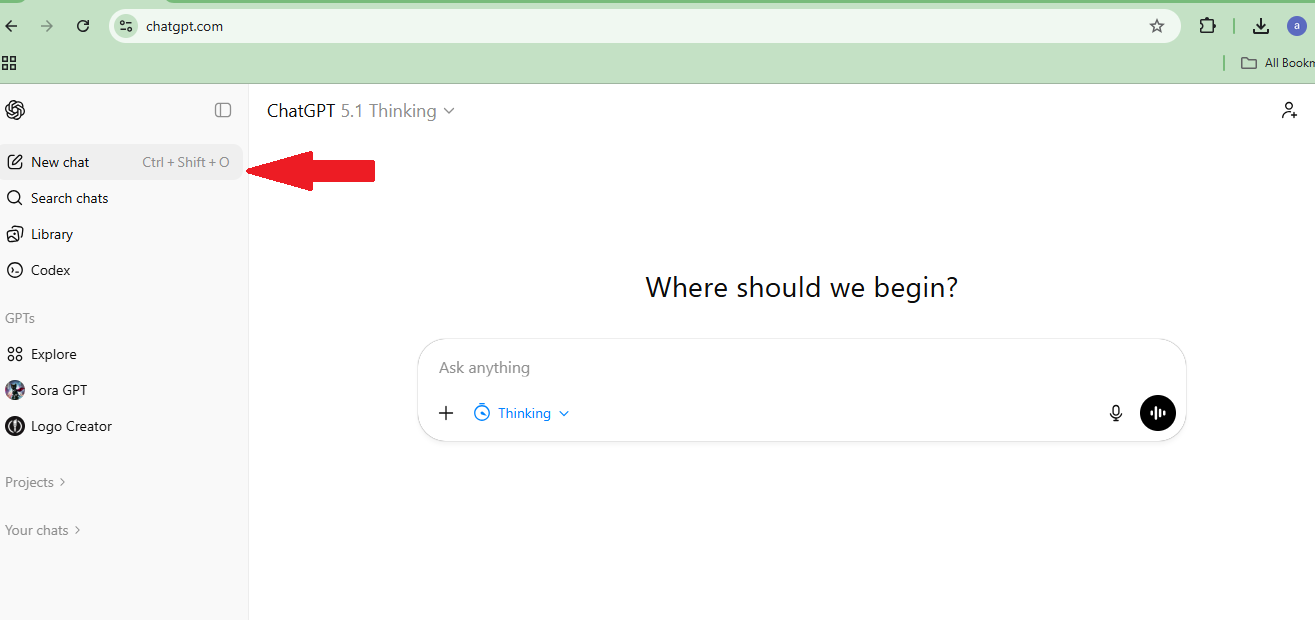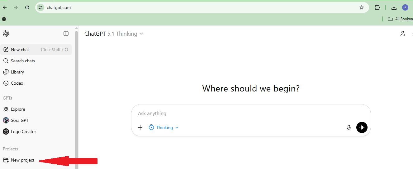 یک New Chat یا گفتوگوی جدید باز کن. (بهتره یک پروژه جدید باشه که هر وقت خواستی بدون مکث و ارائه توضیحات قبلی ادامه بدی)