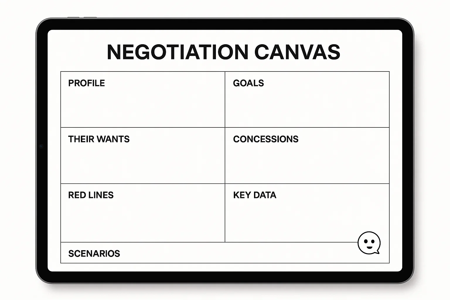 من یک مدیر فروش در ایران هستم و میخواهم برای جلسه بعدی با نماینده خودم یک بوم مذاکره (Negotiation Canvas) آماده کنم.