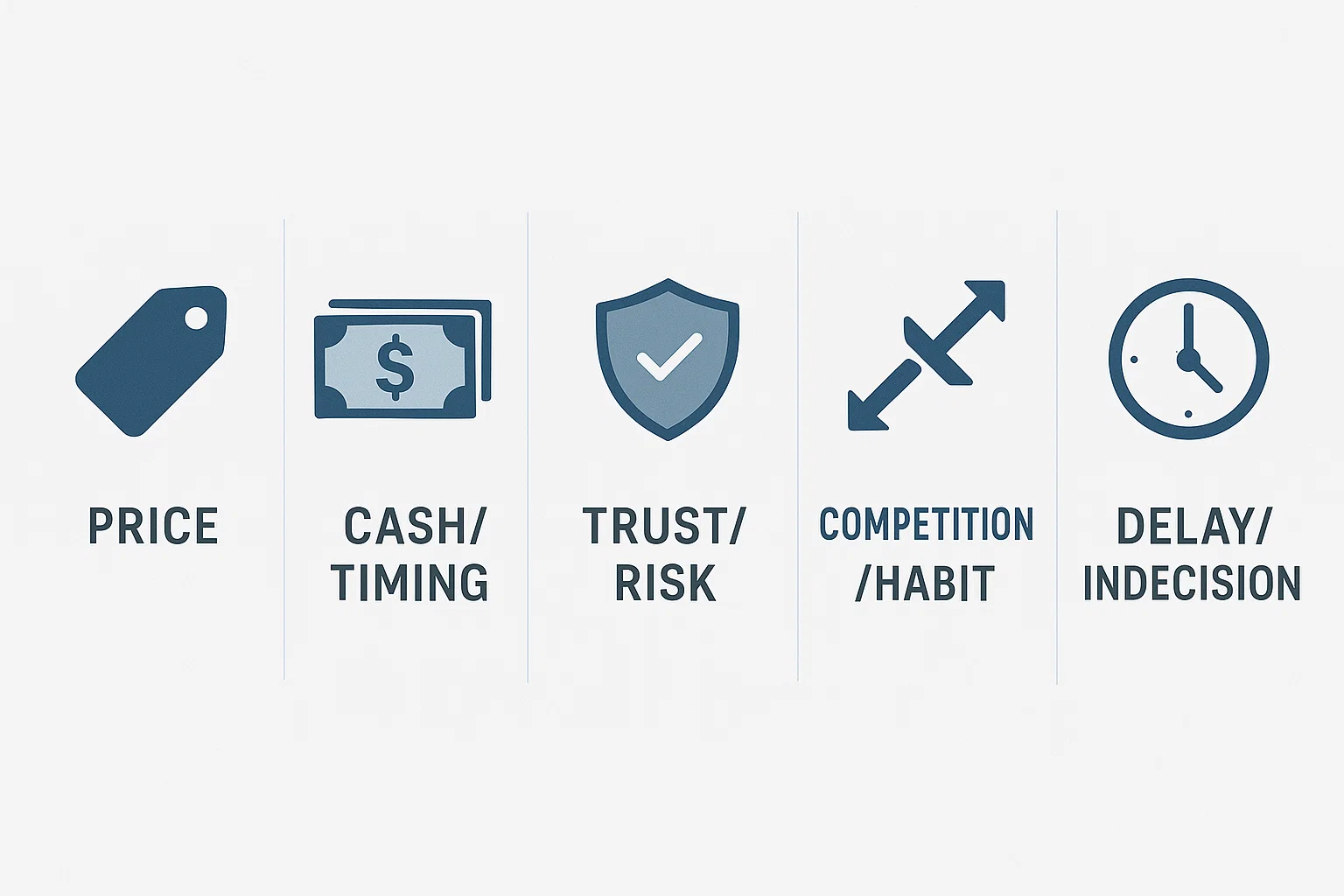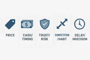 قیمت / نقدینگی و زمان / اعتماد و ریسک / رقابت و عادت / تعویق تصمیم