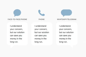 - در مکالمه حضوری، تلفنی و پیام (واتس‌اپ/تلگرام) قابل استفاده باشد